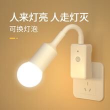 爱耐特智能人体感应灯座E27螺口插座灯led小夜灯红外自动感应亮灯家用卫生间厕所走廊过道楼梯阳台 三插头灯座+9W白光灯泡人来即亮人走即灭,即插即用免安装