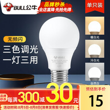 公牛LED节能灯泡三色调光E27大螺口 家用商用大功率光源亮7W护眼电灯泡台灯小吊灯高亮黄光暖光白光 暖/冷/白/三色调光7w球泡 E27灯头