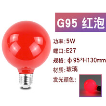 家用LED蜡烛灯泡卧室红色神台大小螺口佛台节能球泡光源 E27 LED G95红色龙珠泡 5W 红
