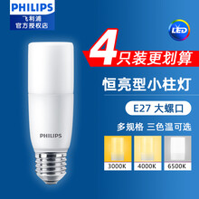 飞利浦led灯泡E27螺口圆柱灯柱形灯泡节能家用筒灯台灯U型超亮照明5.5W7.5W9.5w玉米灯 小柱灯【7.5瓦-E27-中性光】4只装