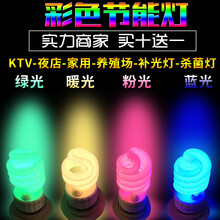 led彩色灯泡e14e27螺口彩色节能泡红黄蓝绿紫酒吧装饰蜡烛水晶灯 E27灯头红光(节能灯) 红色偏粉 15