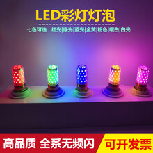LED彩色节能灯泡红色氛围婚庆灯绿色蓝色佛灯螺口玉米灯笼灯泡节 E14小螺口粉光-220v 12W 其它