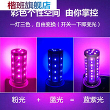 LED彩色灯泡粉红蓝紫色节能灯抖音主播补光灯卧室氛围浪漫情调灯定制 一灯三色(粉+蓝+蓝紫光) E27-5W灯泡