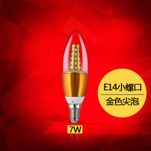 【5个装】led灯泡吊灯光源e14小螺口节能e27大口蜡烛尖泡三色变光 E14小螺口金色尖泡-白光(5个) 7W