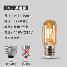 led灯泡复古110v/220vled灯宽电压护眼E27螺口节能家用超亮 T45茶色/85-265V通用 无频闪 2暖黄
