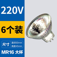 插脚卤素灯泡天花灯射灯筒灯12V220V卤钨灯杯石英灯 【6只装】220V大杯-杯口5CM 20W 黄
