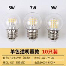 魔豆灯泡led小圆泡5W节能灯泡G45魔豆灯吊灯12W光源E27大螺口三色变光暖光 10只装 - 单色透明罩款 5W 暖白