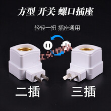 德士利筱岙方型灯头带插头开关一体式底座灯口螺口转换器插座灯泡灯座头 方型螺口开关灯座插头