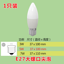 定制led柱形灯泡家用e27e14螺口圆柱形节能灯暖白4000K筒灯灯泡 1只装(E27尖泡) 5 暖黄