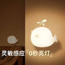 京东超市 阳致 鲸鱼智能人体感应小夜灯充电卧室床头灯宿舍灯婴儿喂奶起夜灯装饰磁吸橱柜衣柜灯玄关过道走廊楼梯壁灯灵敏感应,0秒亮灯!人来即亮,人走灯灭!两种亮度,两种模式!免安装,可吸可挂可手持!