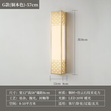 新中式全铜云石壁灯客厅电视背景墙过道走廊床头轻奢简约品质装饰灯 G款(铜本色)57CM限时每满400减60,活动时间7.30-8.5