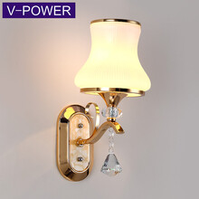 V-POWER 简约现代水晶壁灯 卧室温馨床头灯 客厅过道楼梯灯饰灯具1053 单头(带暖光LED光源)【限时限额】【热卖榜单】【送光源】【2件8折】【399减100】【售后无忧】仅限3天!