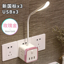 梓宇LED台灯创意小夜灯智能插座带USB插电夜灯多功能卧室床头灯婴儿壁灯插座台灯二合一 魔方台灯【玫瑰金】按下插座开关,触摸灯条即亮灯