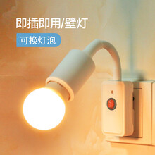 插座式灯座灯头E27大螺口带开关壁灯LED插电小夜灯护眼灯婴儿喂奶灯家用卫生间厨房照明楼梯 三插头灯座(不带灯泡)