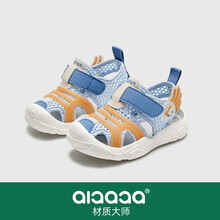 爱伢芽 夏季包头凉鞋一岁半女宝宝软底机能学步鞋男小童防滑不掉沙滩凉鞋 蓝色 20码内长14.5cm(适合脚长14cm左右)