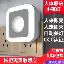 插座式壁灯智能感应小夜灯插电夜间小灯卧室led充电感应壁灯床头喂奶婴儿月子台灯卫生间插座人体小夜灯 方形插电款-人体感应-白光