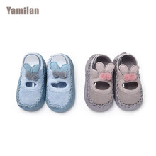 Yamilan 婴儿地板袜夏季薄款学步鞋蝴蝶结纯棉女宝宝浅口袜防滑镂空透气儿童厚软底鞋袜子 兔耳朵A组2双(天蓝+浅灰) M/5-10个月/脚长10-11.5cm