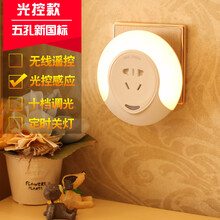 插电遥控led起夜光感应小夜灯创意梦幻插座双USB充电器夜灯婴儿喂奶卧室床头壁灯 5孔插座夜灯光控款