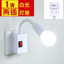 LED节能灯带开关插电小夜灯床头壁灯插座灯座插头夜光看书喂奶灯 二孔灯座+1瓦白光