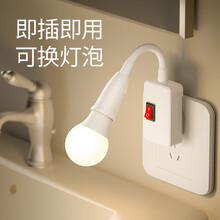 LED节能灯泡插座式壁灯床头灯护眼灯E27螺口婴儿喂奶插电带开关小台灯楼梯洗手间厨房照明灯插电小夜灯 三插头灯座+1W白光灯泡
