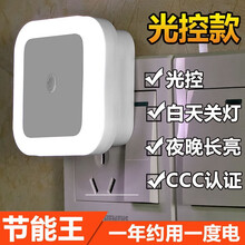led插座式壁灯人来即亮夜光灯婴儿喂奶月子人体感应灯插电床头卧室光控灯老年人家用卫生间节能夜灯睡眠灯 光控插电款-白光---(天黑自动亮)