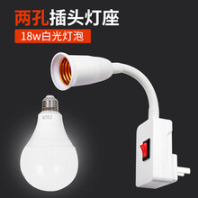 LED节能灯泡床头灯壁灯插座式插电带开关卧室超亮照明直插小夜灯 二插灯座+18W白光LED灯泡