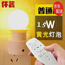 创意遥控led小夜灯插电卧室节能灯泡喂奶灯起夜床头灯插座式壁灯可调光 遥控灯座套装+灯15w暖光灯泡+加购送电池 E27螺口