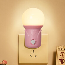 优丽美家小夜卧室床头灯宝宝起夜婴儿喂奶护眼伴睡氛围灯插座插电壁灯节能led小灯 球泡(粉色)丨暖光+白光