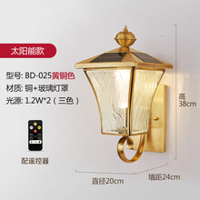 藤源 全铜太阳能壁灯别墅户外庭院灯防水家用欧式墙壁灯免接线感应灯具 铜本色太阳能A款【直径20*高38cm】
