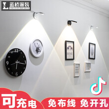 免安装免布线壁灯无线可充电可移动家用卧室粘贴式彩色射灯过道灯 黑色手动开关 3瓦暖白光 3000mAh 【春节通知:1月17日起快递停运,期间订单2月1日起陆续发货注:本店部分商品为定金价格,下单前联系客服确认。