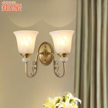 钜豪美式壁灯客厅背景墙壁过道楼梯灯全铜灯具简约装饰卧室床头灯 8231-2头( 赠送E27光源12W)