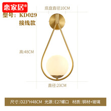日式灯具北欧全铜床头充电壁灯免布线现代简约客厅背景墙卧室轻奢壁灯 KD029-接线款