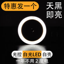 新品 小夜灯插电感应灯夜光灯卧室led灯具床头小夜灯儿童睡觉壁灯节能d 特惠发一个 圆形白色(白光LED白壳)