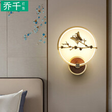 乔千 新中式全铜壁灯客厅背景墙灯禅意圆形楼梯LED过道卧室床头灯 蝴蝶