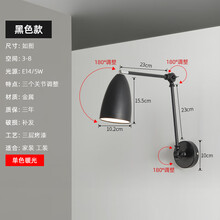 带摇臂壁灯卧室床头灯北欧可伸缩折叠长臂书房阅读灯工业风墙杆灯 暖光-雅黑