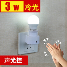 LED声控节能插电感应带开关小夜灯床头壁灯插座插头起夜光喂奶灯 3瓦白光