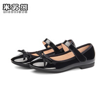 米苏熊新款2021春秋季女童黑色皮鞋软底公主鞋花童学生单鞋中大儿童学生表演出时尚走秀浅口鞋 2018黑色-魔术贴款 36码/内长22.5cm
