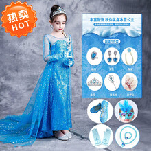 冠空ℂℂ℘小孩子穿的百变潮搭酷万圣节爱莎公主裙女冰雪奇缘拖尾连衣裙新款儿童艾沙女王爱沙裙子六一演出服 裙子+六件套+鞋面具项链手套 1106.18提前购保价一个月买+贵退差价+7天无理由退换货+小学初中幼儿园婴儿宝宝小童中大童男孩女孩穿的