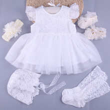 一周岁女宝宝生日礼服裙女婴裙子满月百天拍照衣服礼盒婴儿夏装0-1岁新生儿衣服夏天百日宴公主裙幼童裙子 裙+鞋+发带+蕾丝袜+蕾丝帽 90(建议9-12个月支持七天无理由退换货