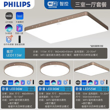 飞利浦照明智能WIFI版led吸顶灯套餐客厅卧室简约现代灯饰Siri百度小度动作感应智能控制灯具悦曜 三室一厅A 115W+36W*2+55W