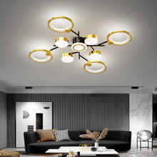 瑶影客厅灯吸顶灯轻奢网红2021年新款金色灯具套餐led北欧现代简约大气客厅大灯灯饰 YH6060黑金(4+4)头+64w三色变光