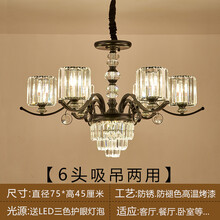 2021新款美式铁艺水晶灯 美式吸顶客厅吊灯现代简约大气轻奢黑色餐厅水晶灯具组合全屋套餐 6头吸吊两用 三色LED灯泡