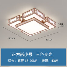 四阿哥 led吸顶灯现代简约客厅卧室书房餐厅超薄灯具 新中式具全屋套餐组合 正方形小号-51CM-三色变光