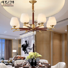 群光 红木全铜新中式吊灯禅意客厅灯现代中国风餐厅灯复古纯铜灯具 八头吊灯 单色暖光(下单白光需要备注)