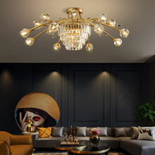 艺盈 北欧全铜客厅吊灯轻奢水晶分子灯简约现代轻奢大气奢华卧室餐厅水晶玻璃吸顶灯具 铜灯体8+3头 LED无频闪白光(护眼防蓝光)