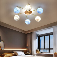 迪涛 北欧现代简约流浪地球星球儿童房灯卧室吸顶灯全铜轻奢客厅房间书房灯 全铜灯体+(6+1)头 LED-三色光(无频闪护眼光源)