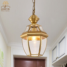 金绅 全铜玻璃灯具 欧式铜灯过道灯玄关灯阳台吊灯 室内室外户外防水玻璃全铜吊灯1801 单头圆边款 直径20cm*高度36cm