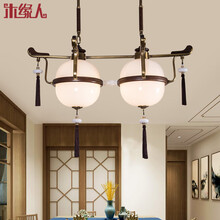 木缘人新款现代简约新中式吊灯单头创意个性走廊过道全铜灯具仿古客厅餐厅书房卧室灯饰中国风别墅茶室房间灯 双头直径930高350mm(不含吊链高)