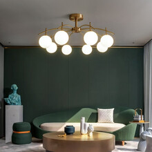 君御 全铜吸顶灯客厅大灯后现代2021年新款卧室餐厅北欧铜灯灯饰HL8110 HL8110A-8送暖光LED光源