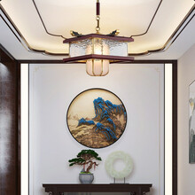 铜格格 新中式吸顶灯长方形客厅灯简约现代卧室灯餐厅复古中国风全铜灯具 1头【海底捞月】吊(E27*1)